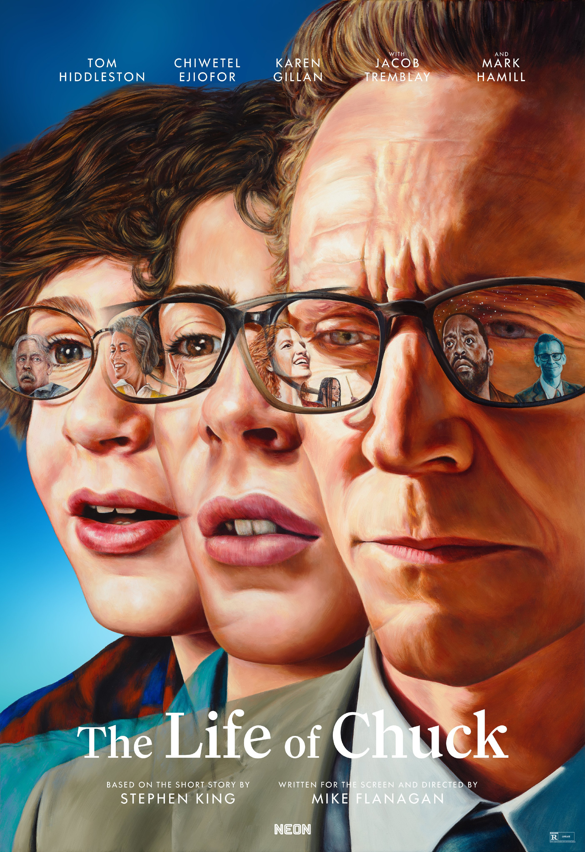 1905电影网讯 日前,电影《查克的一生》(The Life of Chuck)发布油画质感海报,少年、青年、中年,三个人生阶段的查克同框,而他们的眼镜片上映射着相应人生阶段最重要的人。影片由迈克·弗拉纳根执导、编剧,“抖森”汤姆·希德勒斯顿主演,马克·哈米尔、切瓦特·埃加福特、凯伦·吉兰、雅各布·特伦布莱、马修·利拉德等加盟出演。